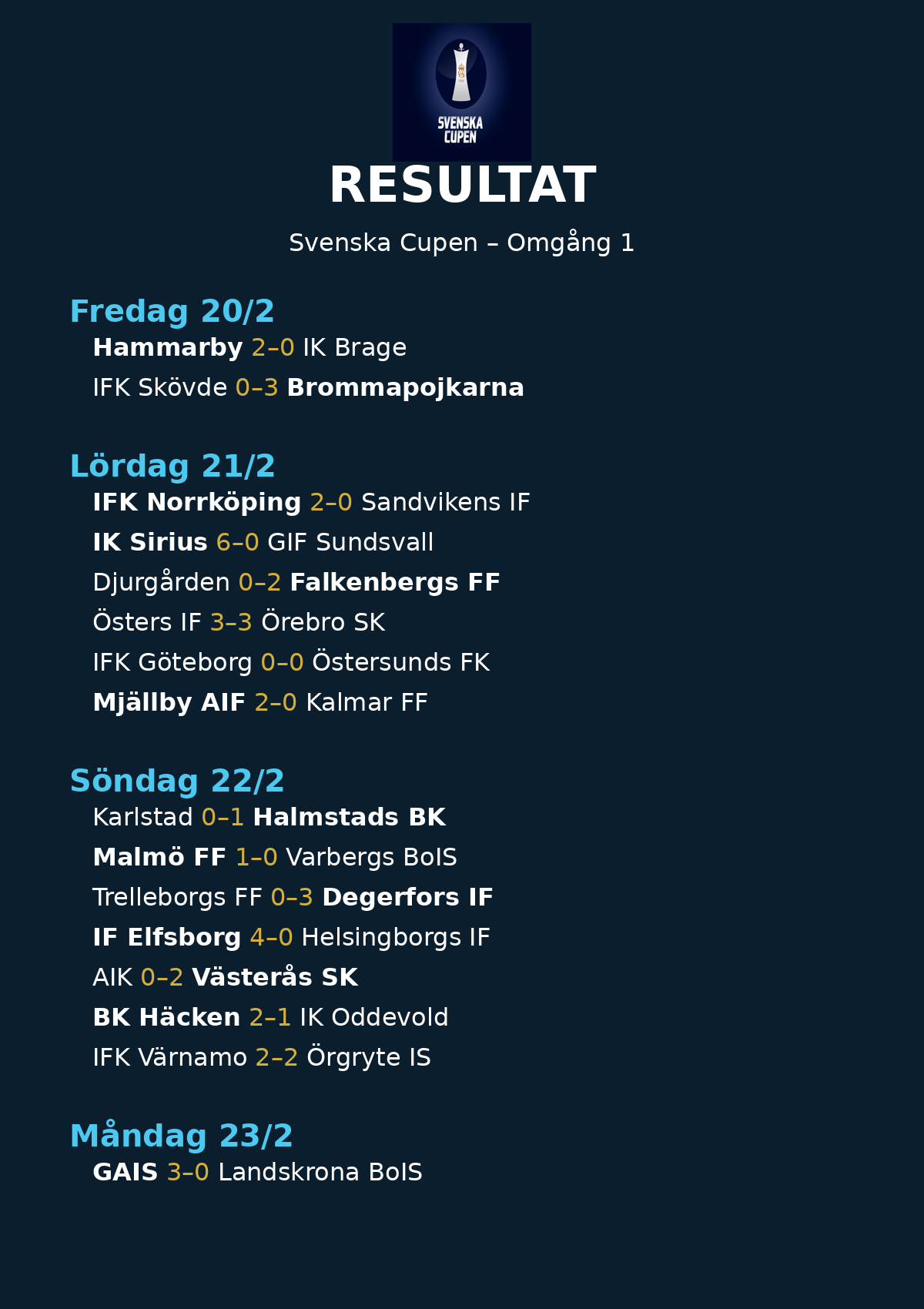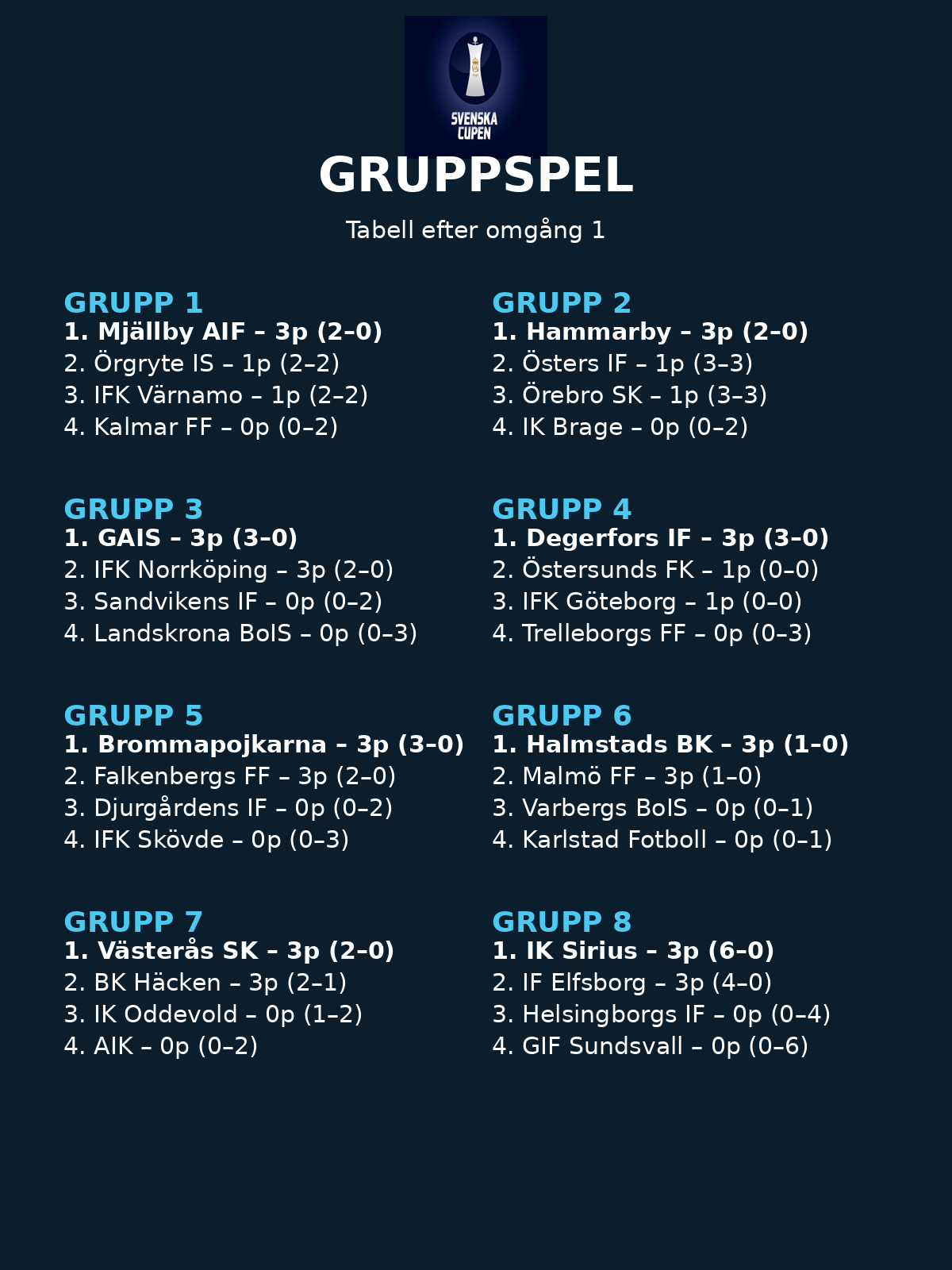 Svenska Cupen är igång – och man märker direkt att det här inte är försäsong längre. Nu spelar det ingen roll om du “ser bra ut”. Nu måste du ta poäng. Och redan efter första omgången ser man vilka lag som klarar att växla upp när det börjar gälla.