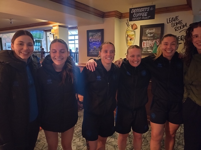 Efter matchen blev det samling på närbelägen pub och efter ett tag kom även delar av damlaget in till många svenskars förtjusning.