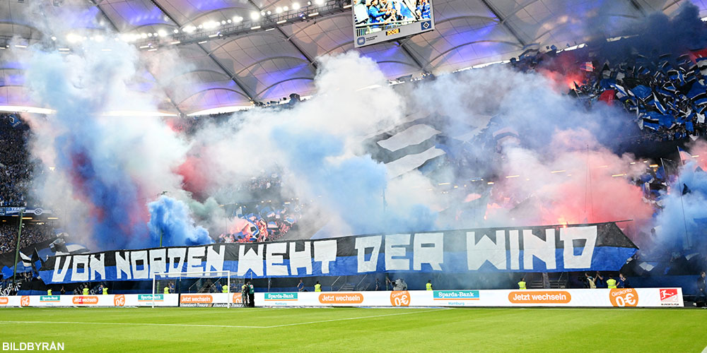 Jag gled dock vidare. Mitt liv som helande estradör är över sedan länge och efter att ha passerat motorvägen A7, så glider man in i Atonaer Park. En weisswurst senare och man står vid Volksparkstadion. Jag hade min hyfsat klädsamma VfB-mössa på mig, kände mig rätt ensam i den tilltagande publiken, som mest hade HSVs blåvit-svarta kulörer. Här-och-var såg jag samtalande fans av båda lagen och det gladde mig mycket. Sedan anslöt en kompis och vi traskade in på arenan, precis vid VfBs klack. Livfullt? Inte alls. Första 12 minutrarna toktyst. Man såg flaggorna som skulle lyftas från VfBs fans och man såg det tillagande mullret som var på väg från hemmafansen. Efter 12 minuter brakade festen igång. Med sånger,en del pyroteknik, men mest flaggor och ett sjujävla liv.