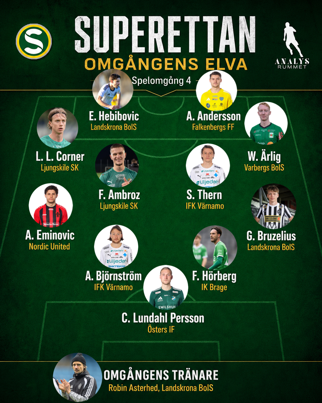 Robin Asterhed, Landskrona BoIS Robin Asterhed är omgångens tränare för att Landskrona åkte till Norrköping och såg ut som laget som visste exakt vad de ville göra. Det var inte bara en 3–1-seger. Det var en match där BoIS såg vuxnare ut, smartare ut och mer redo för Superettan än ett Norrköping som fortfarande verkar inte ha vaknat efter smällen mot Örebro sist.