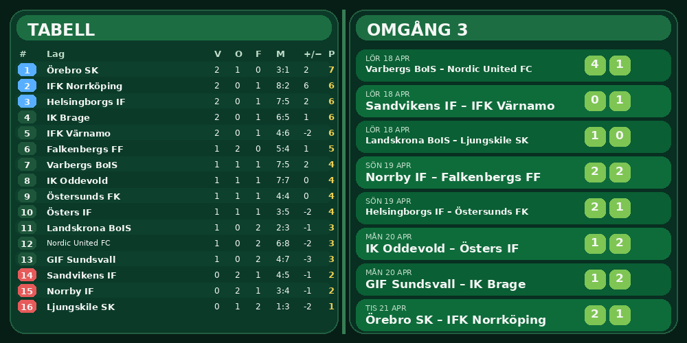 Tre omgångar in börjar Superettan redan bjuda på berättelser värda att stanna upp vid. Den tredje rundan gav oss 20 mål, ett rivalmöte där Örebro SK skrällvann mot IFK Norrköping, ett Helsingborg som fortsätter vara starkt hemma och ett Värnamo som tog ännu en viktig seger.