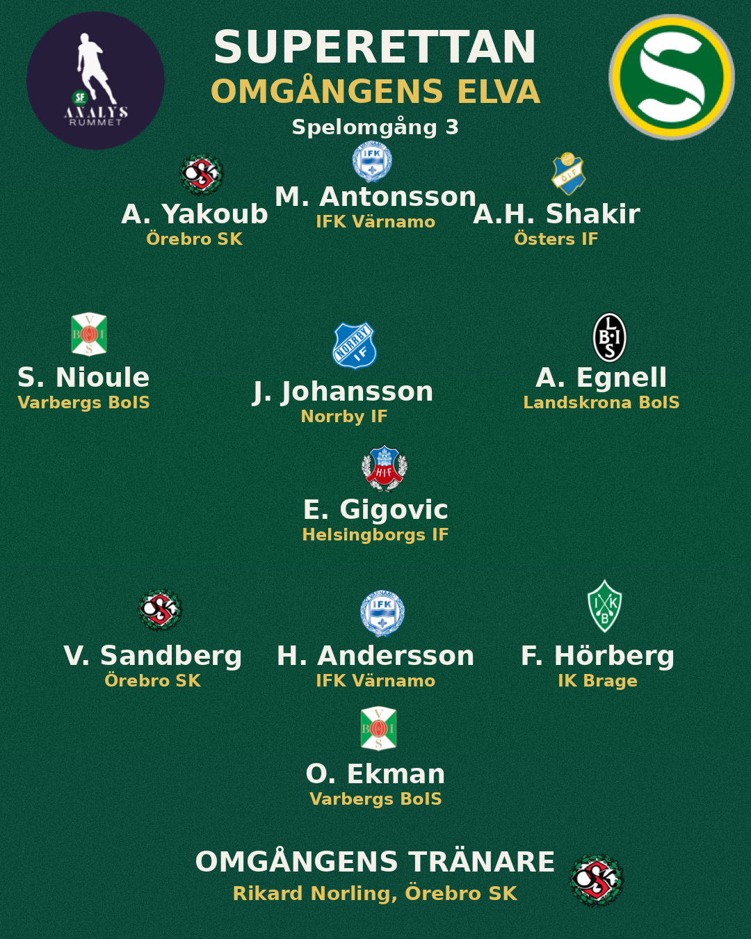 StartfotbollÖvrigt EuropaAnalysrummetVilka spelare tar plats i veckans lag efter omgång 3 i Superettan?