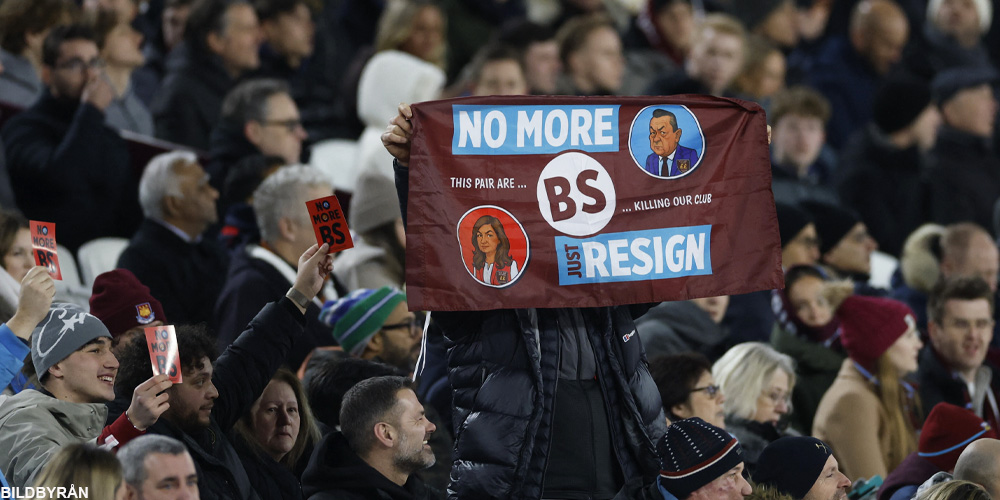Under matchen protesterade West Hams supportrar mot klubbledningen och de uteblivna resultaten. Ett flertal röda kort skymtades i publikhavet med texten ”No More BS”.