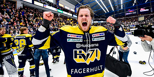 Mikko Lehtonen firar SM‑guldet med HV71 2017, en titel som blev början på hans raketresa mot landslaget och internationella framgångar.