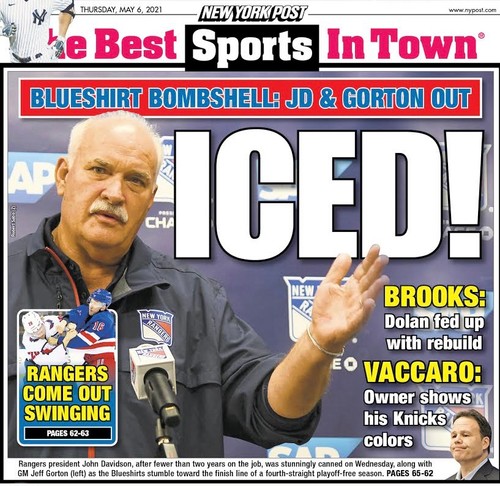 Presidenten John Davidson är en Rangers-legend och oerhört populär. Han var målvakt i laget som gick till Stanley Cup Final 1979 tillsammans med bl.a Anders Hedberg och Ulf Nilsson men föll mot Montreal. Han var sedan mångårig TV-expert i MSG Network för Rangers, en av de bästa och mest trivsamma jag hört. 2006 blev han President i St. Louis och byggde om laget från grunden till en elitlag. 7 år senare flyttade han vidare till Columbus och gjorde om samma sak där innan han 2019 kom ”hem” till New York till fansens förtjusning. Nu får han alltså lämna redan efter två år pga en oberäknelig ägare. Mot slutet av matchen mot Washington igår ropade fansen ”JD – JD” som stöd. Det som står helt klart är att vare sig JD eller Gorton stod bakom det uttalande som NY Rangers gjorde om George Parros, det var helt och hållet ett verk av Jim Dolan.